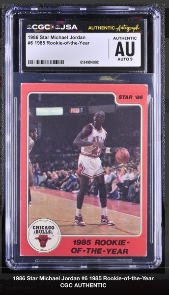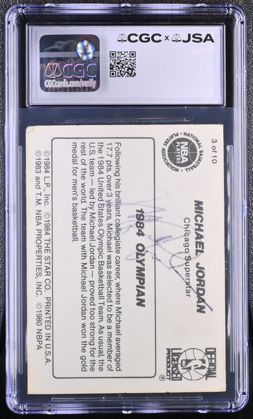 1986 Star Michael Jordan 1985 ROY Michael Jordan 6 CGC JSA Auth Auto 9 & 1986 Star Michael Jordan 1984 Olympian Michael Jordan 3 CGC JSA Authentic Auto 7